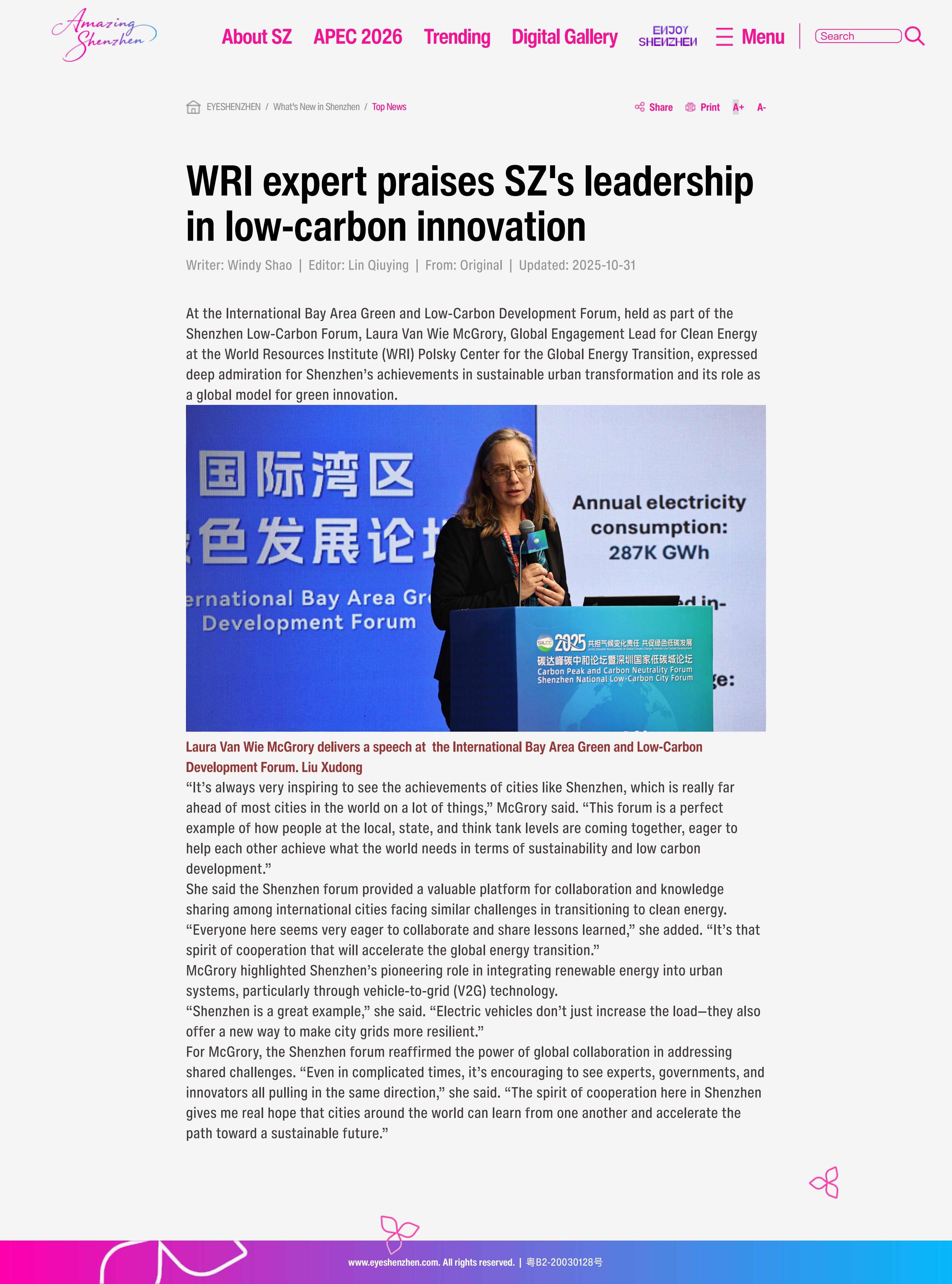 EYESHENZHEN|WRI expert praises SZ's leadership in low-carbon innovation