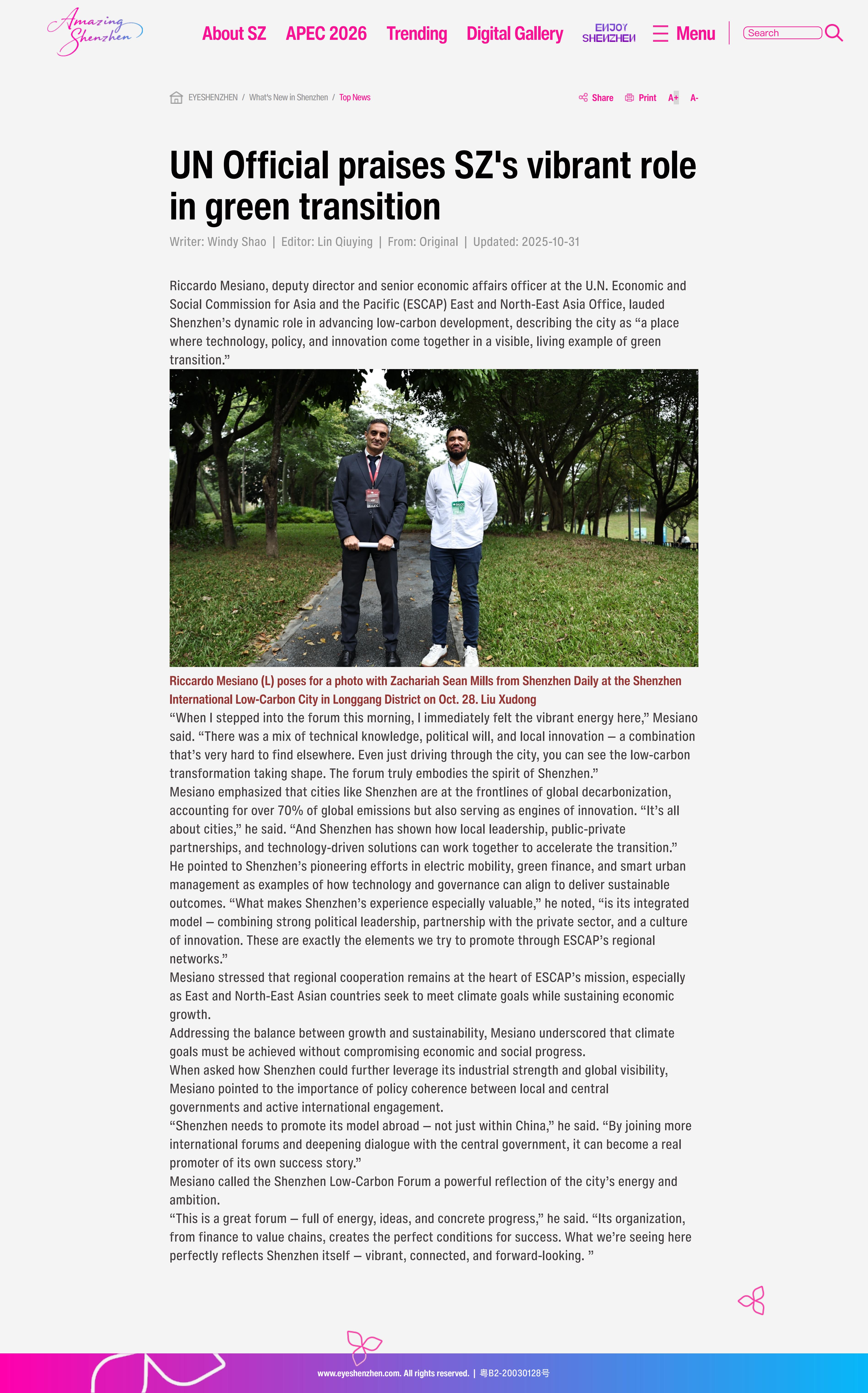 EYESHENZHEN|UN Official praises SZ's vibrant role in green transition