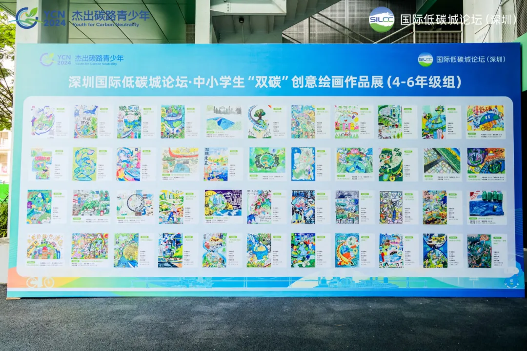 国际低碳城论坛举办期间,场馆同时布设了杰出碳路青少年——中小学生“双碳”绘画作品大赛的部分优秀作品(随机展示),吸引了许多观众驻足。