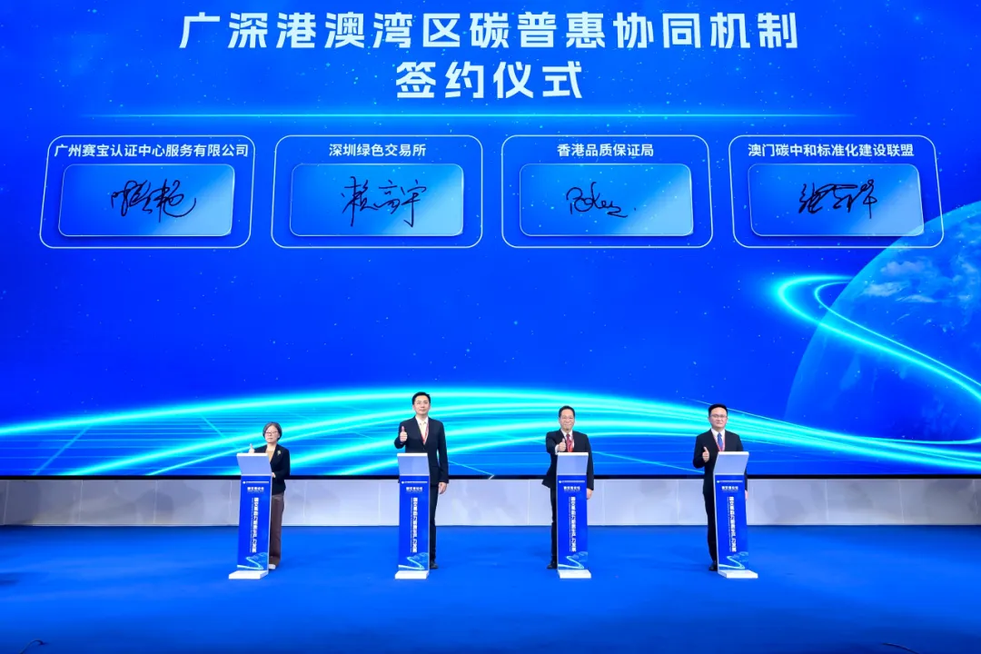 此外,论坛还举行了广深港澳湾区碳普惠协同机制的签约仪式,由深圳绿色交易所与香港品质保证局、澳门碳中和标准化建设联盟、广州赛宝认证中心服务有限公司共同签署,标志着广深港澳碳普惠机制互联互通,协同推进大湾区碳普惠建设工作。