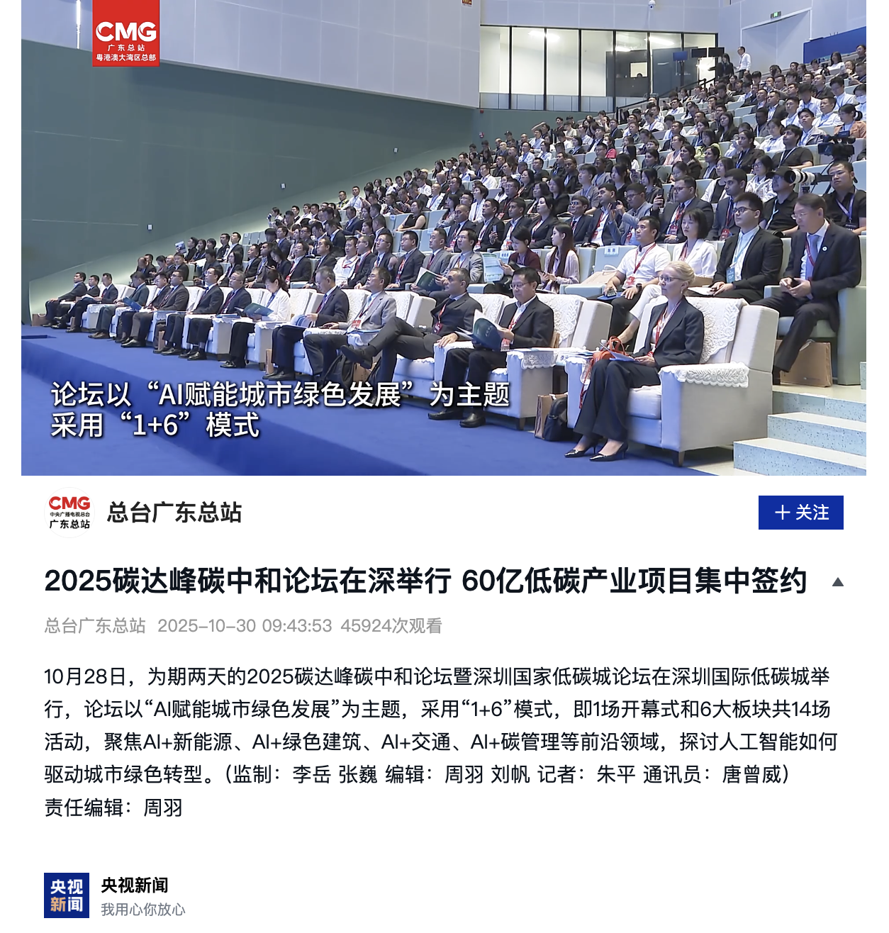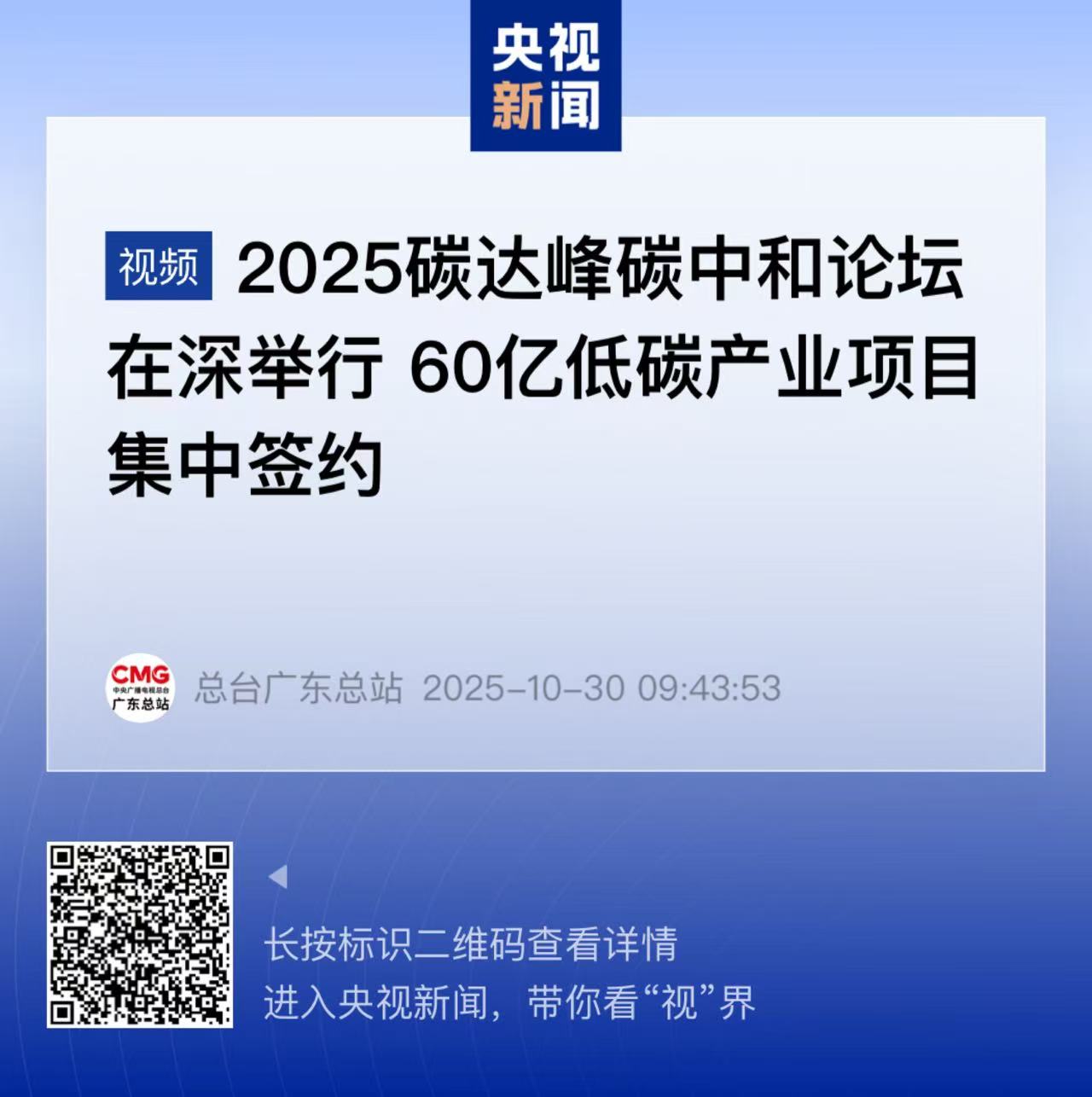 央视新闻|2025碳达峰碳中和论坛在深举行 60亿低碳产业项目集中签约