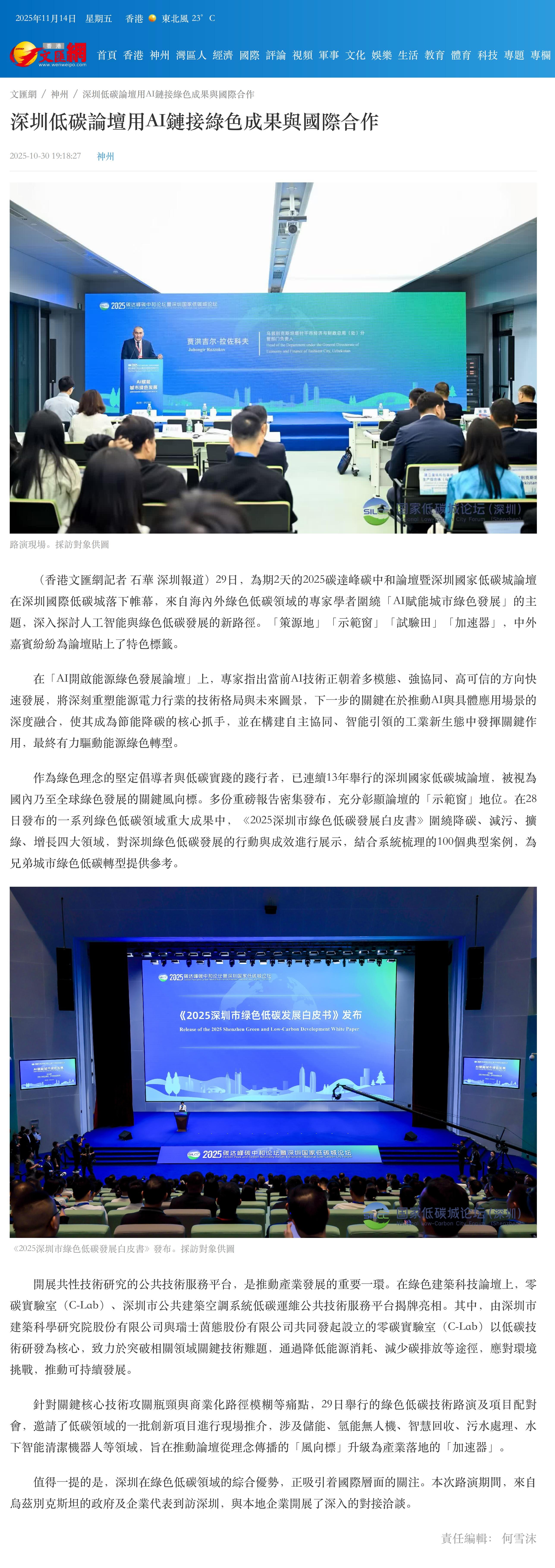 文匯網|深圳低碳論壇用AI鏈接綠色成果與國際合作