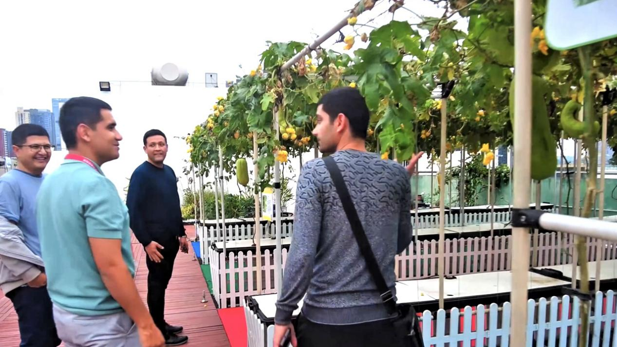 10月29日,乌兹别克斯坦代表团成员参观屋顶农场。