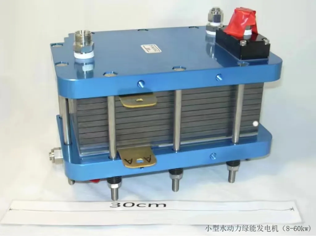 水动力绿能发电技术主要采用质子交换膜电解水(PEM)制氢技术,该发电技术的双极板材质采用耐腐性更好的先进材料——钛,并涂上含铂的土层,具有优良的强度,低电阻率,高导导热率和低氢渗透性。相对于其它电解制氢工艺,电流密度、电压低、用电量较少,氢纯度,无腐蚀性介质,对环境友善污染,设备体积、成本可控,已实现初步商业化,是极具发展前景的绿色制氢技术路径,主要为家庭、社区、工业、轻型电厂提供电服务。